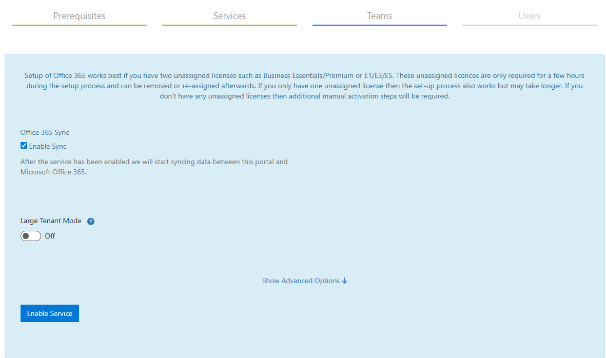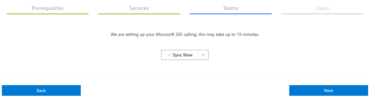 Dit kan tot 15 minuten duren. Er wordt nu gesynct met de Active Directory van de tenant en de Session Border Controllers van Call2Teams, inclusief rechten worden weggeschreven om uiteindelijk te kunnen bellen met Teams.