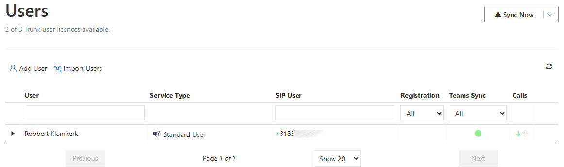 Klik rechts boven op Sync Now om de gekoppelde nummers met Teams te koppelen.