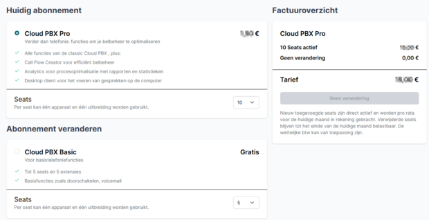 Abonnementswijzigingen in de Cloud PBX zijn altijd gratis.