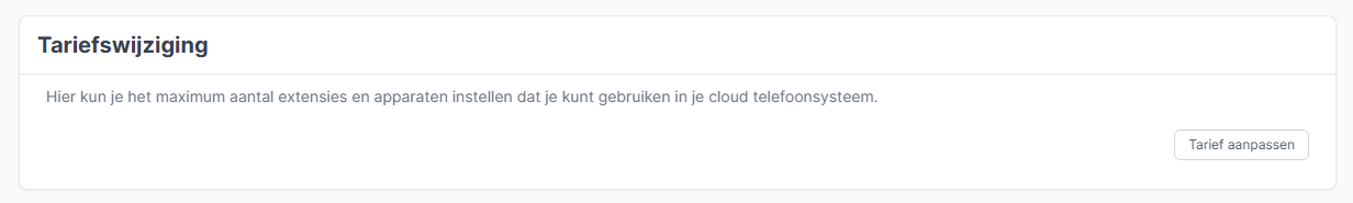 Als de seatgrootte van de Cloud PBX gewijzigd moet worden, is het voldoende om meer extensies + eindtoestellen aan te maken dan zijn inbegrepen in het huidige abonnement. Het aantal seats wordt dan automatisch verhoogd. Let op: dit neemt een verhoging in kosten met zich mee.